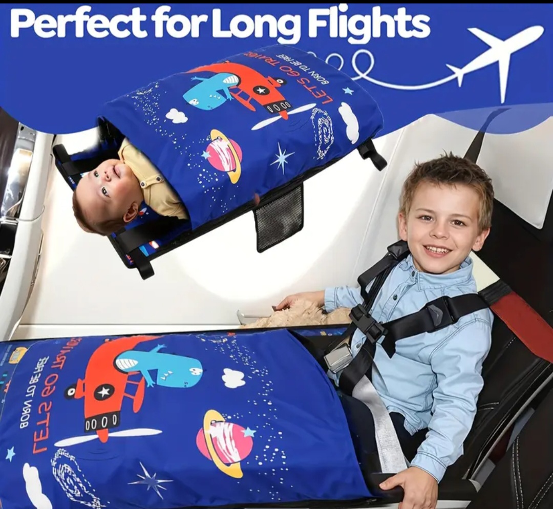 تخت پایی مسافرتی کودک، قابل تنظیم و سبک، مخصوص سفر با هواپیما یا ماشین. راحت، قابل باد شدن و بهترین همراه سفر برای کوچولوی شما.